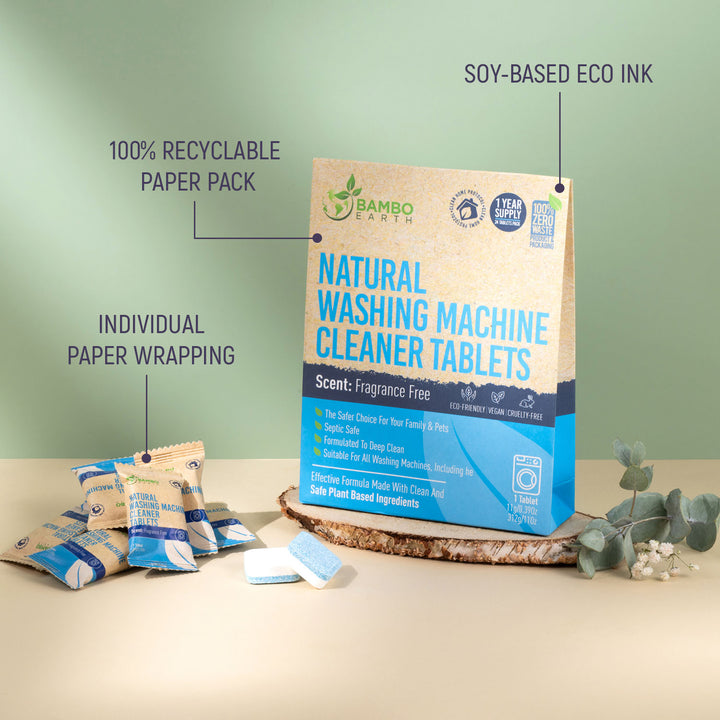 It's a struggle to keep my washing machine clean. I have a big family with practically all the adult children living at home. My washer gets used a lot. One would think that this alone would keep it clean, but it doesn't. My water is extremely hard, and no matter how many times I ask, some still close the washer's door.These Natural Heavy Duty Washing Machine Cleaner Tablets work very well. They are easy to use, just put them in the washer where the clothes would go and run it. There isn't a strong scent, no bleach or ammonia. I like that there are no parabens or phosphates. It really is appreciated that this company puts so much effort in being eco-friendly, including the packaging. I wish more companies did this.Overall, I'm a big fan of these tablets. They are a convenient way to clean the washer and do work. For the amount that is included and the fact that this is done about once a month, it is a great value.