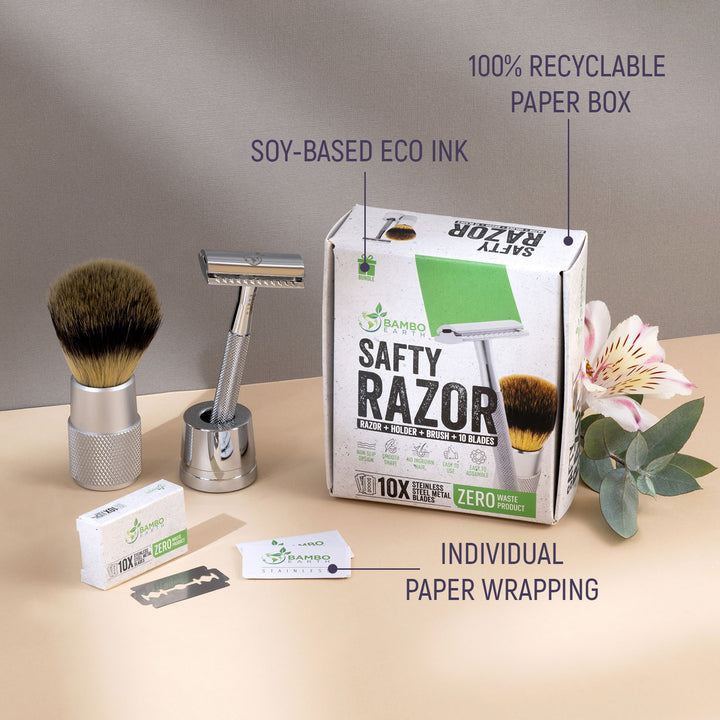 Each razor comes with a compact pack of 10 stainless steel replacement blades, making it a sustainable and durable alternative to disposable plastic razors.